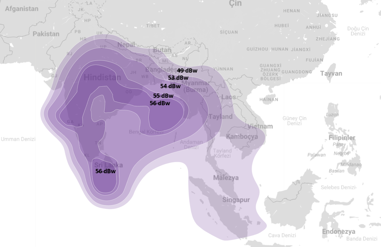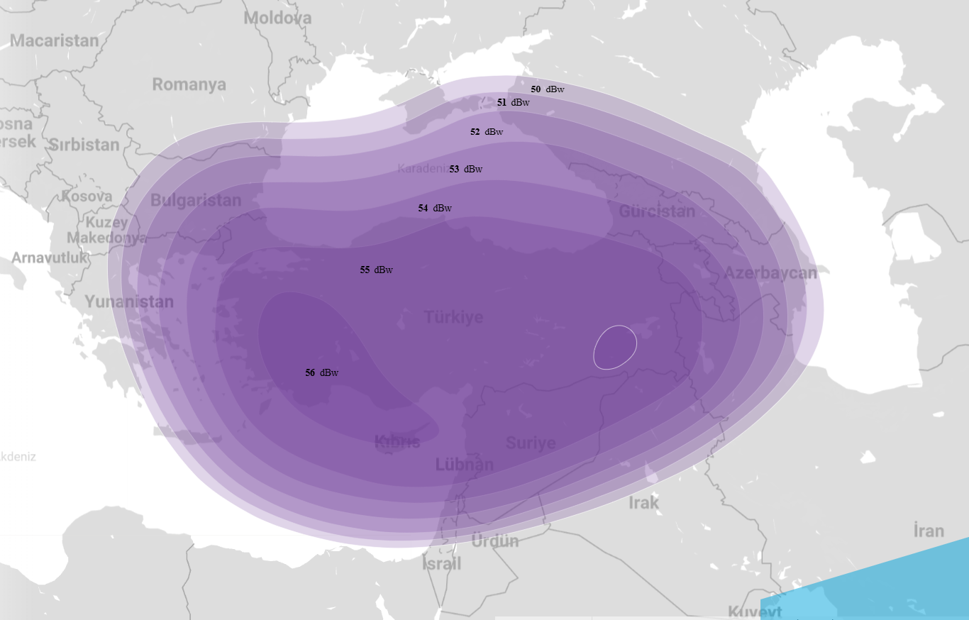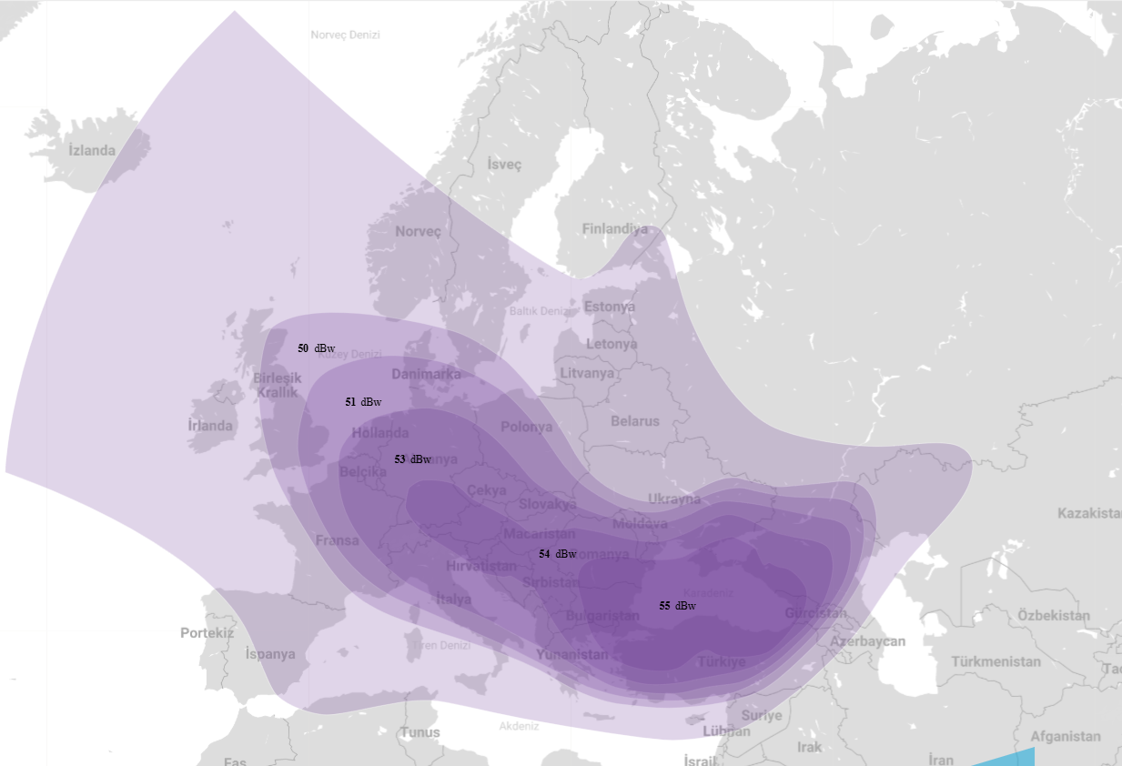 | 42 dBW | 41 dBW | 40 dBW | 39 dBW | 38 dBW | 37 dBW | 36 dBW | 35 dBW | 34 dBW | 33 dBW | 32 dBW | 31 dBW | 30 dBW |